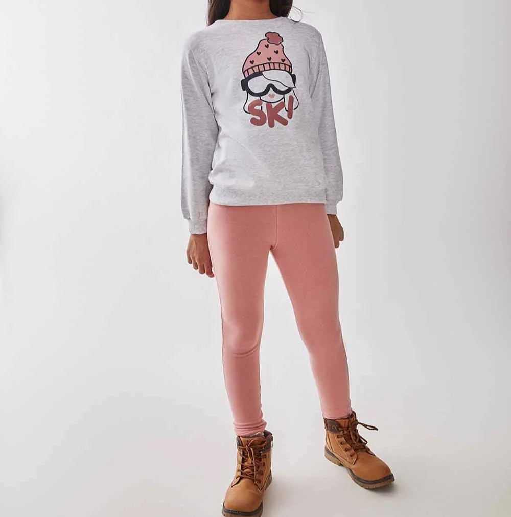 Conjunto para niña en gris y rosa. Este encantador conjunto incluye una sudadera con un divertido estampado de personaje con gorro de esquí y unos leggings, perfecto para combinar estilo y comodidad. La sudadera cuenta con detalles coloridos que añaden un toque de originalidad y diversión, mientras que los leggings proporcionan un ajuste cómodo y flexible. Confeccionado en tejidos suaves y duraderos, este conjunto garantiza comodidad durante todo el día, siendo ideal para las actividades cotidianas. La sudadera cuenta con puños acanalados y un dobladillo ligeramente más largo en la parte trasera para un ajuste moderno y seguro. Los leggings se ajustan perfectamente al cuerpo, permitiendo libertad de movimiento. Este conjunto es ideal para cualquier ocasión, desde aventuras al aire libre hasta momentos de juego y salidas casuales. ¡Las niñas se sentirán como verdaderas estrellas de la moda con este conjunto vibrante y cómodo! ¡Haz que se sientan especiales y listas para conquistar el mundo con este conjunto lleno de personalidad!